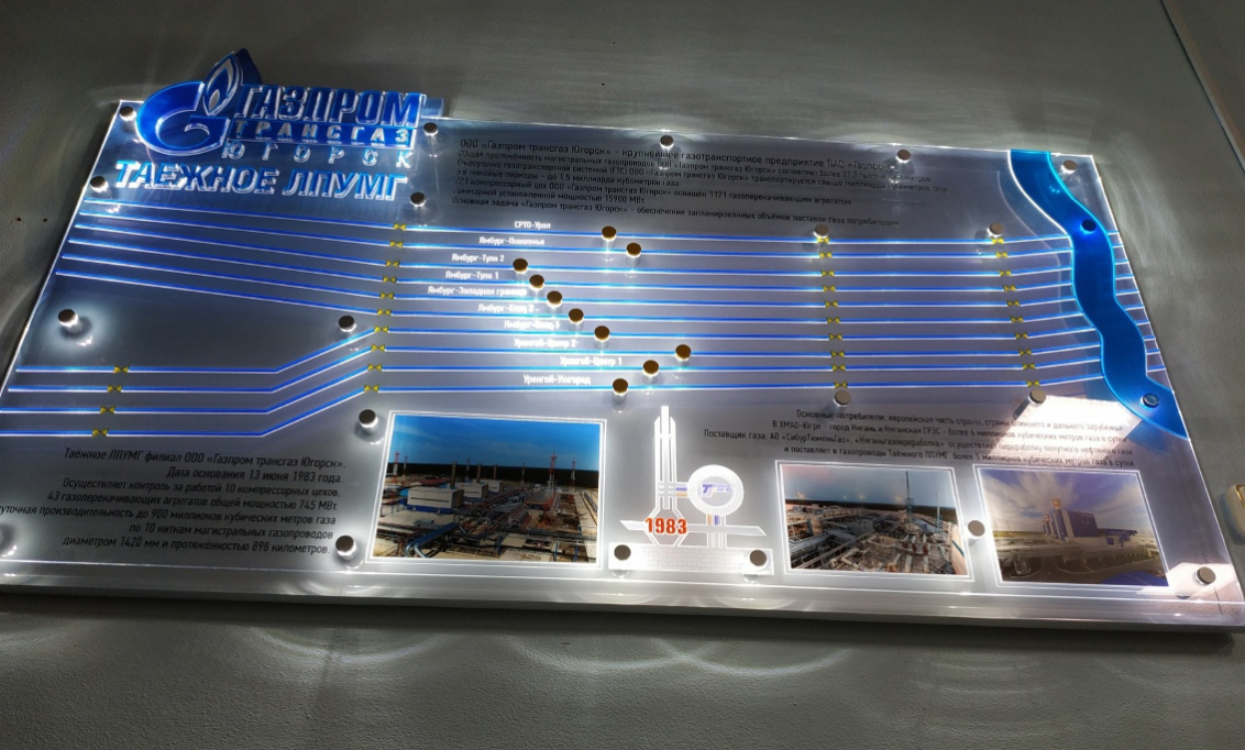 По сути, такая вывеска – это световая панель с торцевой подсветкой. Что касается изображения, то оно наносится методом гравировки непосредственно на поверхности стекла. Получается, рисунок будет состоять из кромок, преломляющих световые лучи. Именно в этих местах они становятся заметными, очерчивая логотип или надпись.